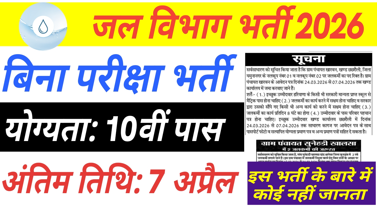 • भर्ती का नाम: जल विभाग भर्ती 2026